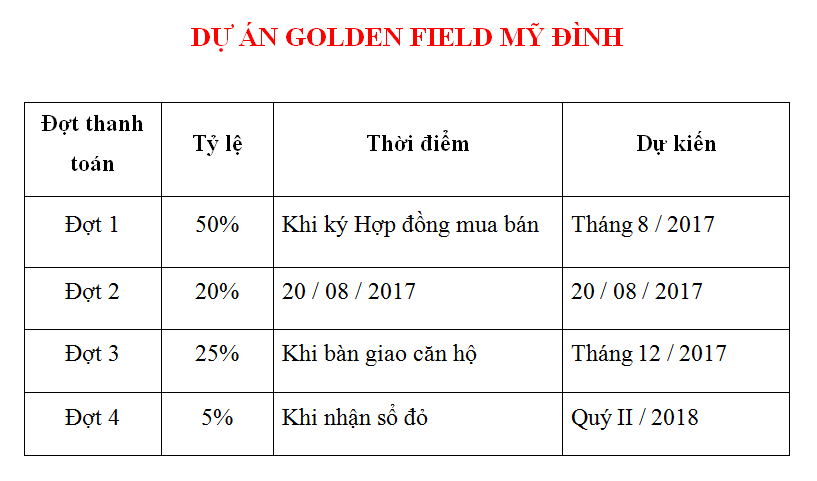 - Dự án GOLDEN FIELD MỸ ĐÌNH đã tiến hành cất nóc dự án vào tháng 12/2016.