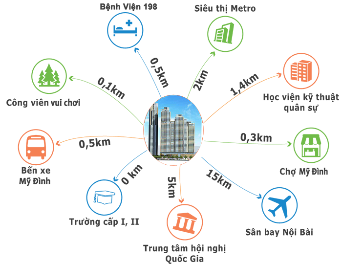 Keangnam: 2,5 km - Dự án MBLand Mỹ Đình nằm giữa Công viên Lê Đức Thọ – Hồ Tùng Mậu.