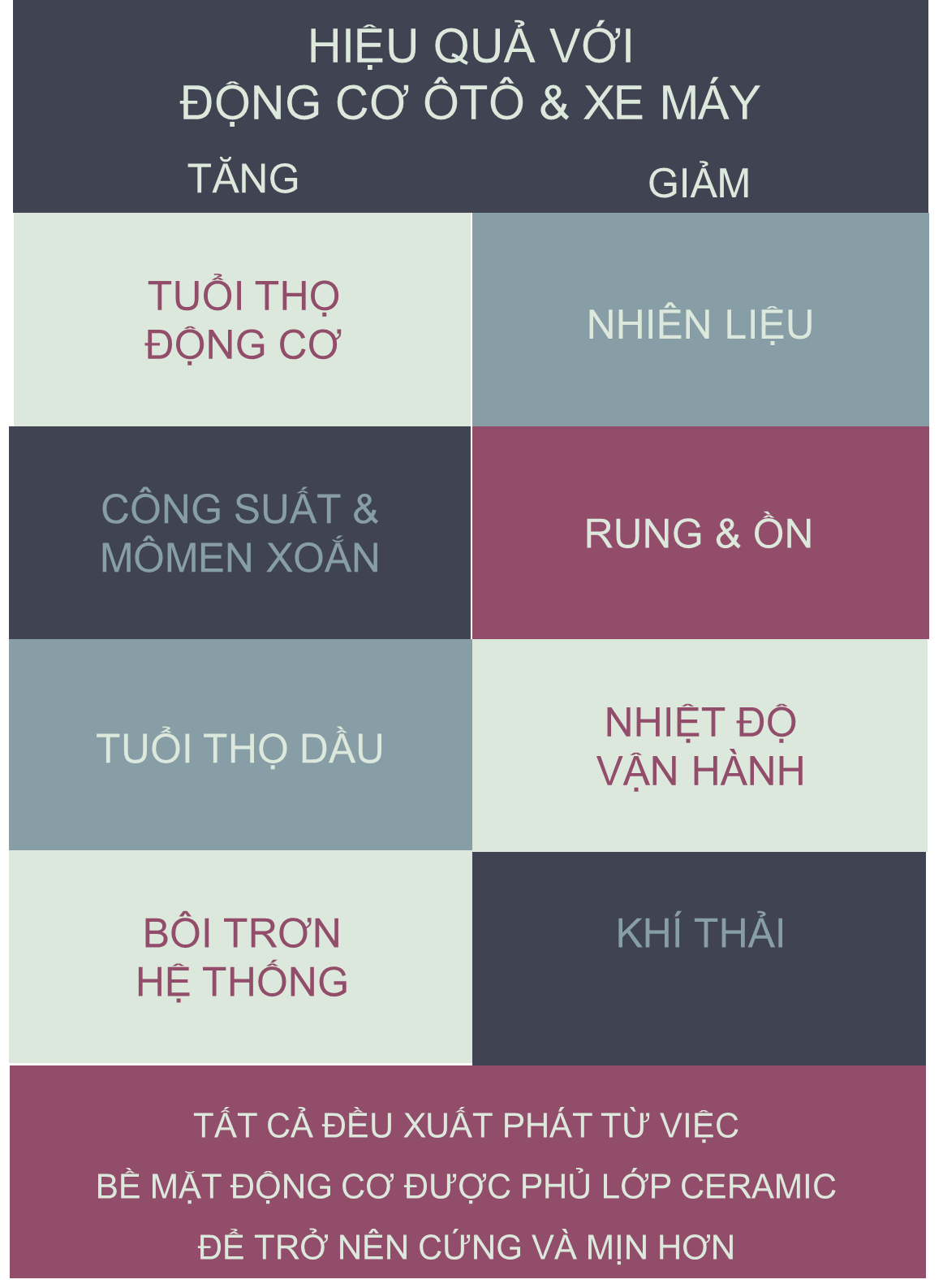 Chất Xử lý Cerma tác dụng với Carbon từ nhiên liệu không đốt hết, tạo phân tử Ceramic Nano cực nhỏ.